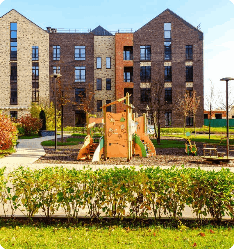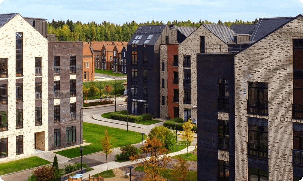 Многоквартирные дома и таунхаусы ЖК «Парк Апрель» образуют единую композицию с благоустроенными дворами без машин. Расположение домов тщательно продумано, так что из окон открываются красивые виды на тихие дворики и окружающий лес, а в квартирах всегда много воздуха и света. Дома выглядят абсолютно по-европейски, благодаря использованию в отделке бельгийского облицовочного кирпича ручной формовки. Он известен в том числе тем, что сохраняет свой изначальный цвет даже через 50 лет. В строительстве используются только самые современные материалы, например, керамические блоки Wienerberger Porotherm и цементно-песчаная черепица Braas. Это гарантирует долговечность, прочность, хорошую шумоизоляцию и идеальный микроклимат.