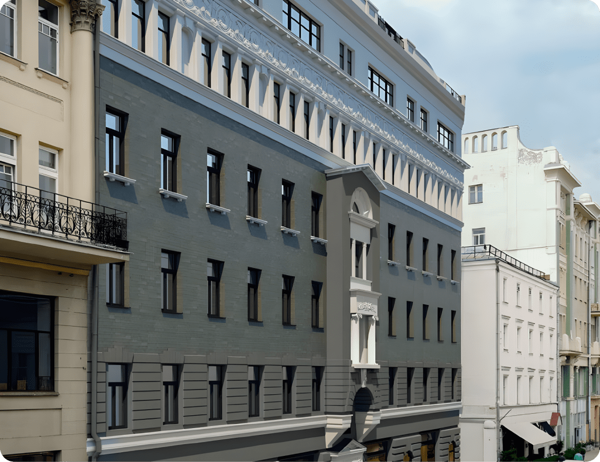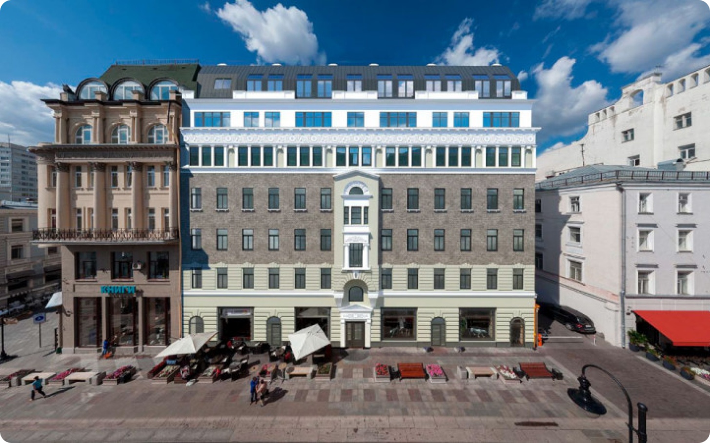 КЛУБНЫЙ ДОМ «СОВЕТНИК», ПОСТРОЕННЫЙ В 1908 ГОДУ, НОСИТ СТАТУС ОСОБО ЦЕННОГО ИСТОРИЧЕСКОГО ГРАДОФОРМИРУЮЩЕГО ОБЪЕКТА. В эстетике фасада дома объединены доминирующие стили исторической эпохи начала ХХ века – модерн и неоклассицизм. Статус и строгость архитектурных линий подчеркнуты днем игрой света и тени, а вечером подсветкой фасада. Дом оборудован современными инженерными системами и системой безопасности в соответствии с требованиями, предъявляемыми к премиальным объектам недвижимости.