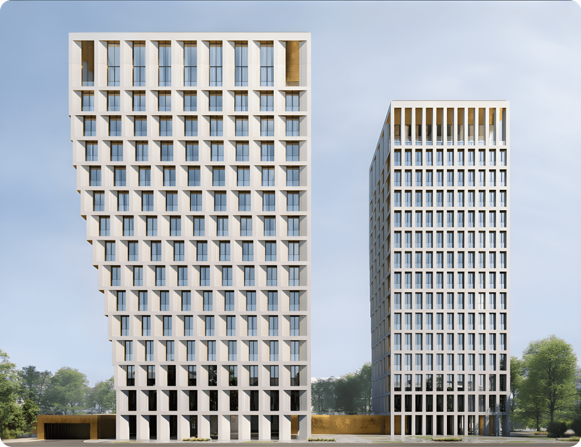 Клубный дом White Khamovniki создан в современном минималистичном стиле. Две белые башни лестничными уступами растут к небу, футуристичный фасад дома подобен арт-объекту. Симметрия в архитектуре зданий создает его связь с классической застройкой района Хамовники.
